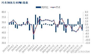 2022年2月河北钢铁行业PMI环比降3.8% ,终值42.9%