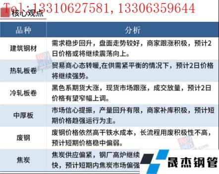 中厚板:3月1日,全国24个主要城市20mm普板均价5193元/吨,较上个交易日上涨33元/吨。今日黑色系期货大幅上行,市场信心再度提振,叠加昨日中板成交火爆,今日现货开盘市场报价纷纷上调。从供应端来看,伴随着冬奥会的结束,北方钢企限产部分放松,产量有所释放,但是仍然执行采暖季限产政策,产量回升幅度有限。需求方面来看,下游开工情况有所好转,补库意愿偏强,加之近期盘面带动,采购积极性有所提振。综合预计,目前无缝91视频在免费线观看钢管厂家利润较高,中板现货底部支撑较强,预计短期中厚板价格趋强运行为主。