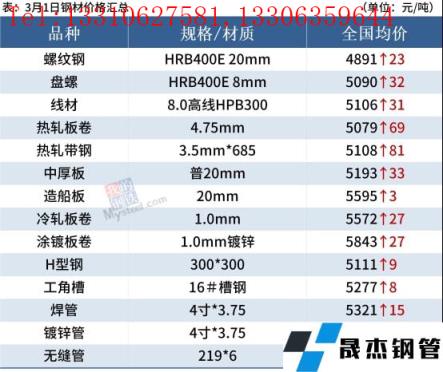 热轧板卷:3月1日,全国24个主要城市4.75mm热轧板卷均价5079元/吨,较上个交易日上涨69元/吨。今日黑色商品期货全日强势上行,大部分商家均大幅提高报价,午后盘面继续拉升,现货价格进一步上扬,贸易商心态转暖。目前来看,在供需紧平衡的情况下,价格上涨动能强烈,加之海外地缘冲突升级,全球供需错配的前提下,或将影响中国钢铁价格。综合来看,预计2日热轧板卷价格或将继续强势运行为主。
