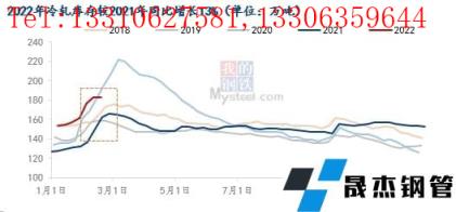 虽然目前冷轧库存相对于其他品种而言较高,但从绝对值而,冷轧目前库存压力并不是很大。只是去年同期冷轧极度缺货,库存相比其他品种偏低,因此造成目前同比库存上涨的情况。