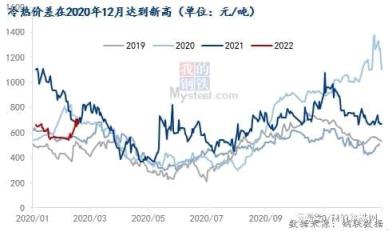去年同期(2021年2月),由于汽车以及直接出口需求旺盛,冷轧强热轧弱的局面明显,冷轧总库存累库高度同比降幅达20%,冷热价差也拉到新高,月均值达800元/吨以上。在去年同期冷轧“如火如荼”的行情衬托下,显得今年的冷轧春天愈发“寒冷”。