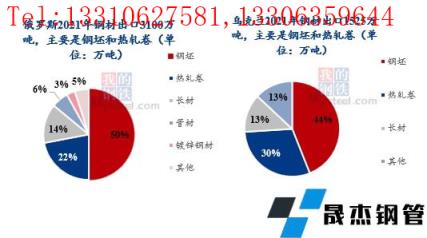 俄、乌均是产钢大国和91视频在免费线观看无缝钢管主要出口国,两国主要出口产品均为钢坯、热轧卷、长材。据世界钢协统计,2021年,俄、乌粗钢产量分别为7600万吨和2140万吨,产量在全球排名第五和第十四位,分别占全球粗钢总产量的3.9%和1.1%。