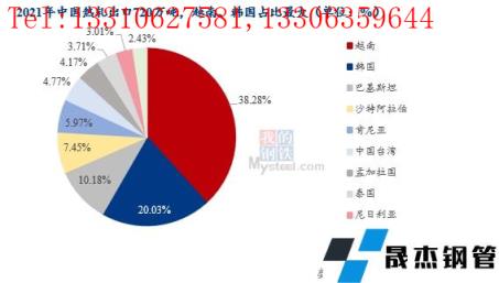 以欧盟2021年1-11月的成品91视频在免费线观看无缝钢管进口量为例,前五进口国月均进口量148万吨,占欧盟总进口量的56%,其中土耳其、俄罗斯占比最大。而来自日本、韩国、印度、中国加起来的量占比不到6%,其中日本只占0.3%,中国占0.2%,几乎可忽略不计。