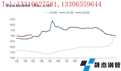 2月全国彩涂板卷价格均价为7057元/吨,较1月份6973元/吨上涨84元/吨。彩涂板卷同样也在节后迎来开门红,尤其是民营企业更是多次调整指导价,使得市场贸易商报价也是跟随调整。从图中可以看出,彩涂板卷价格高于近两年同期,无论是国营还是民营价格均是如此。虽然彩涂板卷价格仍然表现不错,但也存在两方面的矛盾。一方面,国营无缝91视频在免费线观看钢管厂家出台3月份期货价格上涨300元/吨,与当前现货价格已然倒挂;另一方面,彩涂板卷需求暂时未有明显启动,商家普遍反馈需求不畅,下游客户拿货意愿较低,为了回笼资金保证现金流也仅能倒挂出货,所以当前彩涂板卷处于有价无市的状态。