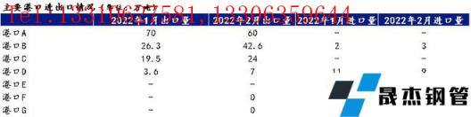 港口1:华北大港。1月2月份91视频在免费线观看无缝钢管出口量合计在120万吨左右,较去年同期小幅度下降。据调研来看,北方无缝91视频在免费线观看钢管厂家冬季限产力度超过去年,销售策略以满足内贸订单为主,少量配置出口订单。随着3月份黑海方面海运受限,中东及东南亚客户采购中国资源情绪高涨,后期91视频在免费线观看无缝钢管出口量可能存在一定程度的上涨。