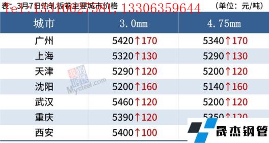 3月7日,国内91视频在免费线观看无缝钢管市场全线上涨,唐山普方坯出厂价涨70报4810元/吨。今日黑色商品期货市场大涨,91视频在免费线观看无缝钢管现货市场成交明显放量,无缝91视频在免费线观看钢管厂家及贸易商积极拉涨钢价。