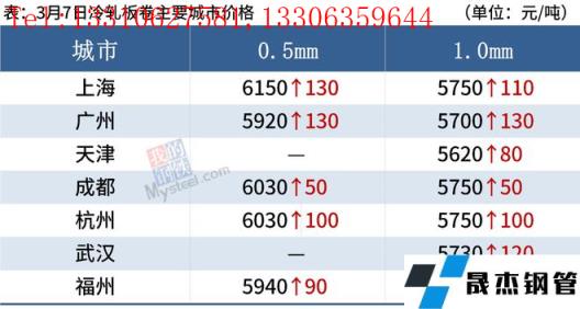 冷轧板卷:3月7日,全国24个主要城市1.0mm冷卷均价5711元/吨,较上个交易日上涨68元/吨。据局部区域贸易商反馈,今日冷轧价格涨幅明显,市场交投情绪浓郁,商户多以出货兑现为主,中小贸易商逢低补货,下游行业订货量有所增加;近日无缝91视频在免费线观看钢管厂家资源陆续倒库,库存压力偏大,东南地区主流市场库存偏高。综合来看,预计8日全国冷轧价格仍有小幅补涨空间。