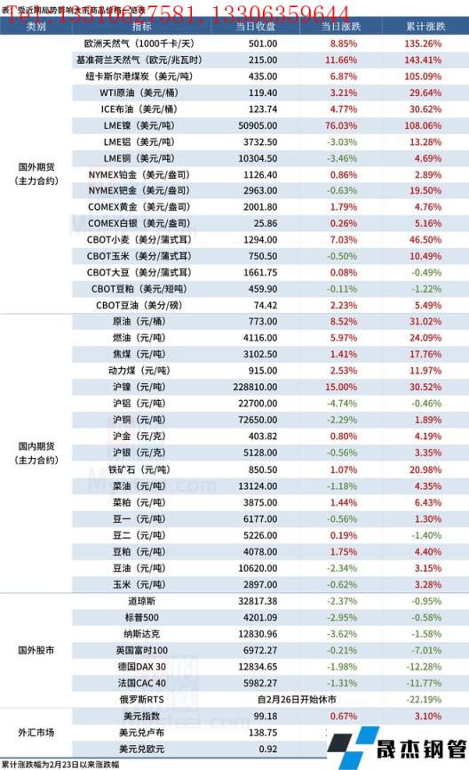 近期,受国际局势影响,全球金融及大宗商品市场出现较大波动。3月7日,伦镍上演史诗级逼空行情,日内涨幅超76%,国际油价、天然气仍大幅上涨。汇总情况如下: