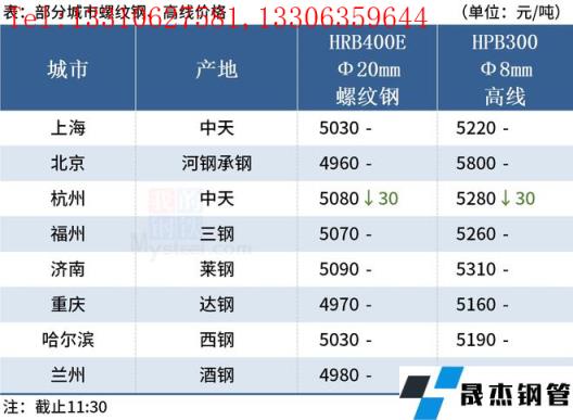 ◎杭州:8日早盘建材市场价格整体跌20-30,螺沙5050中5050西城5030浙江华宏4910江苏镔鑫4910长达抗震5030线材中天5280亚新5110联鑫黄海盘螺5120。(单位:元/吨)