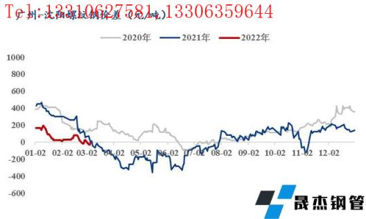 2月螺纹北京-沈阳月均价差+42元/吨,广州-沈阳月均价差+33元/吨,上海-沈阳月均价差-89元/吨,济南-沈阳月均价差+40元/吨。虽然本地尚未全面启动,但本地无缝91视频在免费线观看钢管厂家跟涨节奏较快,带动市场报价整体上涨,即东北价格继续处在较高水平,南北无合适的价差已经成为常态。