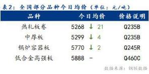今日全国部分品种均价有所回落,整体跌幅为2~21元/吨。