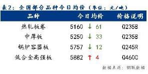 今日全国部分品种均价止跌回涨,其中低合金高强板涨幅为4元/吨。