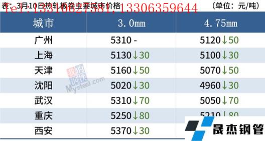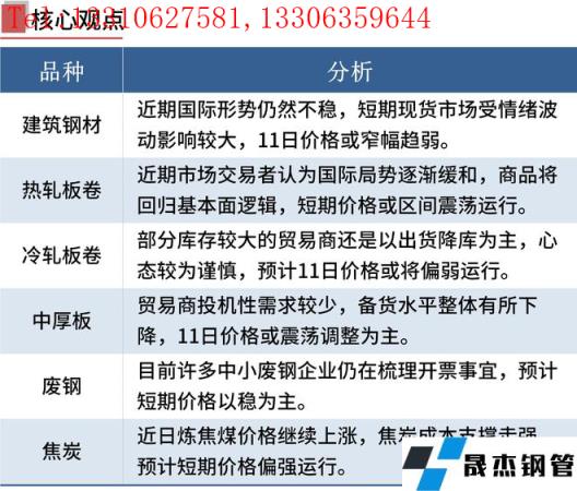中厚板:3月10日,全国24个主要城市20mm普板均价5250元/吨,较上个交易日下跌33元/吨。据周度91视频在免费线观看无缝钢管产量、库存数据显示,本周中板产量减4.06万吨,厂库降2.70万吨,社库降4.66万吨,产量库存双减,无缝91视频在免费线观看钢管厂家受原料涨价及两会影响,一定程度减量,贸易商投机性需求较少,备货水平整体有所下降,需求方面小幅回升,程度有限。综合预计,11日国内中厚板价格震荡调整为主。