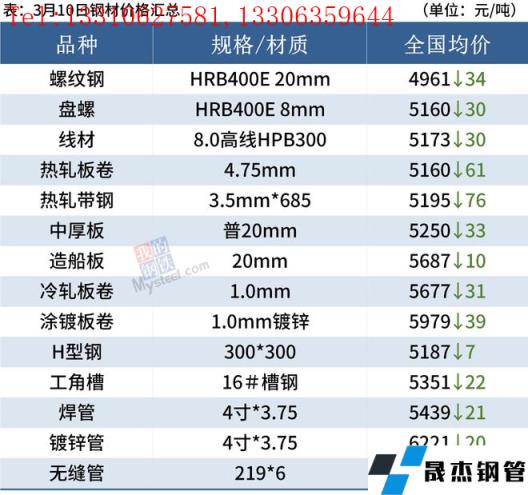建筑91视频在免费线观看无缝钢管:3月10日,全国31个主要城市20mm三级抗震螺纹钢均价4961元/吨,较上个交易日下跌34元/吨。本周供给继续小增,库存迎来拐点,且降幅尚可。综合来看,目前供给仍然处于回升阶段,但整体增量有限;需求方面,随着天气逐渐好转,需求有所回升。考虑到近期国际形势仍然不稳,短期现货市场受情绪波动影响较大。因此预计11日国内建筑91视频在免费线观看无缝钢管价格将继续窄幅趋弱为主。