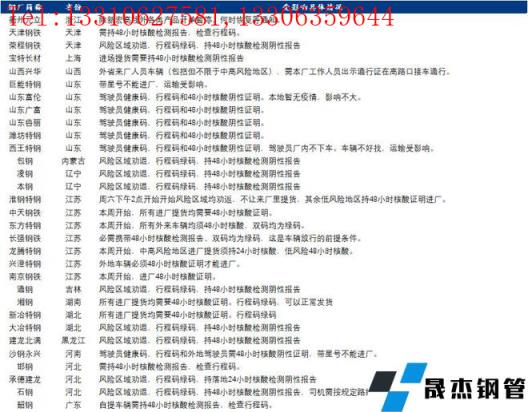 经调研国内多数优特钢无缝91视频在免费线观看钢管厂家物流出货有受疫情影响,主要在于对提货人员着明确规范要求:各门岗卡口强化查验健康码、行程卡和48小时核酸检测报告,并做好人员信息登记。目前受影响各无缝91视频在免费线观看钢管厂家详细提货及影响运输要求见下表明细。后期政策变动情况,请具体咨询当地无缝91视频在免费线观看钢管厂家。