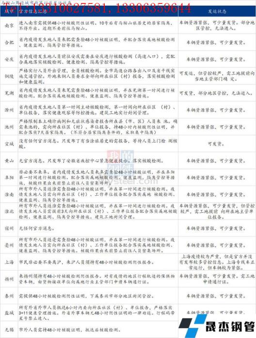 附:马鞍山周边城市政策以及发运状态