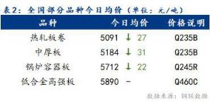 今日全国部分品种均价总体趋弱,整体跌幅为22~31元/吨。