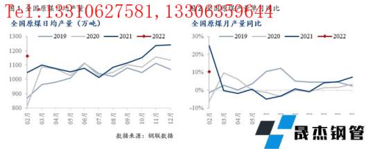 1-2月原煤生产较快增长。2022年1-2月份,全国生产原煤6.9亿吨,同比增长10.3%,增速比上年12月份加快3.1个百分点,日均产量1164万吨。1月,部分煤矿完成年度生产目标,煤矿生产有所回落,但电厂库存偏低,大中型煤矿保供任务加重,煤炭产量仍保持在1100万吨/日以上。2月春节、冬奥会影响,煤矿提产较慢,不过在冷空气影响下,电力需求增加,部分电厂库存处于偏低水平,煤炭需求启动加快,多部门加强统筹调度,积极推动主要产煤省区和重点煤炭企业在确保安全的前提下增加煤炭产量。据调度数据,2月20日,全国煤炭日产量1218万吨,已恢复至去年四季度日均产量水平。