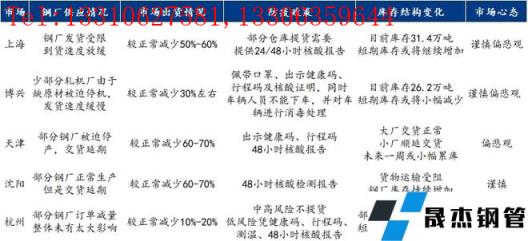 天津市场:近期疫情肆起,天津昨日新增本土病例51例,涉及区域偏多,范围偏广,部分无缝91视频在免费线观看钢管厂家被迫停产,交货延期。各地交通受阻,据客户反馈,运费上涨幅度在20%左右。当地政策方面,全部返津人员实行查验“一证一码一卡”政策,即对来返津人员在铁路、机场、道路客运场站和公路通道卡口查验48小时核酸阴性证明、健康码绿码和通信行程卡。库存方面,目前大厂交货正常,商家到库资源在6-8成左右,小厂由于疫情资源无法正常交货,只能顺延交货。贸易商反馈疫情期间成交乏力,预计未来一周会出现小幅累库的现象。心态方面,由于近期疫情扩散较严重,且市场成交持续处于正常偏低水平,商家心态逐渐偏悲观。