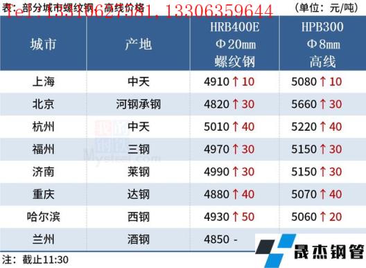 ◎福州:17日早盘建材市场价格涨30,现线三钢5150三宝5130,螺三钢4970三宝4940大东海4940吴铁4930,盘三钢5240三宝5230。(单位:元/吨)