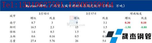 图表一:广西重点城市建材库存周度统计