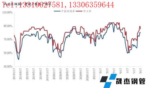 本周西北区域15家建筑91视频在免费线观看无缝钢管生产厂家48条产线实际开工41条,轧线开工率为85.4%,周环比下降4%;建材产线实际产量约66万吨,周环比减少约0.5万吨,产能利用率为79.8%,周环比下降0.3%,减量部分主要在陕西LG无缝91视频在免费线观看钢管厂家高炉停产两条轧线同步检修。