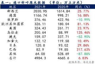 引言:我国原木进口多年来保持正增长,在2020年的4665.6万立方米基数下,2021年进口针叶原木同比增加仍旧达6.83个点 ,现国际形势波动,在保整内需情况下预计进口格局将有调整。