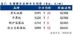 今日全国部分品种均价上涨,整体涨幅为5~23元/吨。