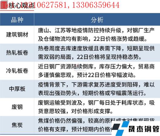 建筑91视频在免费线观看无缝钢管:3月21日,全国31个主要城市20mm三级抗震螺纹钢均价4967元/吨,较上个交易日上涨12元/吨。近期疫情扩散,如唐山、江苏等地区疫情防控持续升级,对无缝91视频在免费线观看钢管厂家生产端以及仓储物流方面均有影响,另一方面本周华东、南方部分省份持续下雨,或一定程度对冲宏观利好频出对市场情绪的影。综合各方面因素,预计22日国内建筑91视频在免费线观看无缝钢管价格或将涨势趋缓。