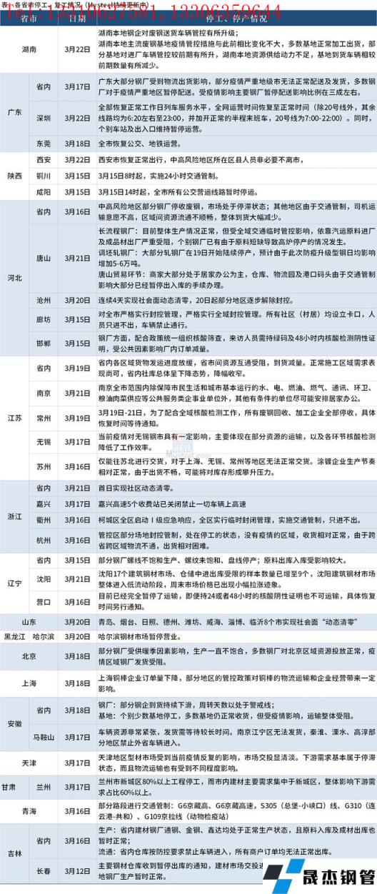 截至3月22日,汇总了16个省份停工复工最新信息。其中,湖南省本地钢企对废钢送货车辆管控有所升级;主流废钢基地疫情管控措施与此前相比变化不大,多数基地正常加工出货,部分基地对进厂车辆管控较前期有所升。唐山长流程无缝91视频在免费线观看钢管厂家目前整体生产情况正常,但受全域交通临时管控影响,依靠汽运原料进厂及成品材出厂严重受阻,个别无缝91视频在免费线观看钢管厂家已有由于原料短缺导致高炉停产的情况发生。山东省已有青岛、烟台、日照、德州、潍坊、威海、淄博、临沂8个市实现社会面“动态清零”。具体情况如下: