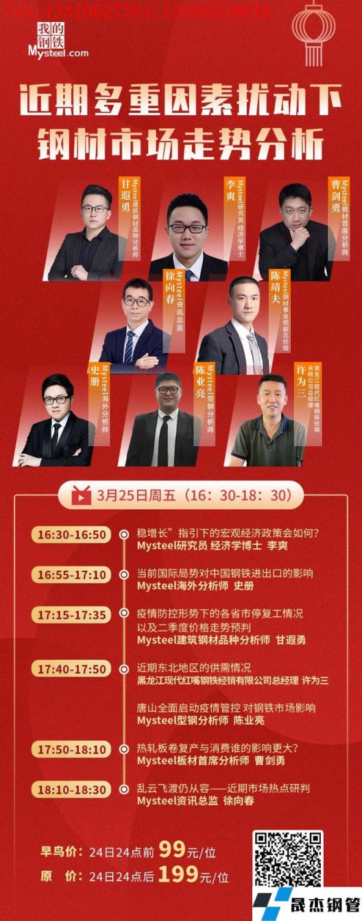 3月25日周五下午16:30,黑龙江现代红嘴钢铁经销有限公司总经理许为三、资讯总监徐向春、经济学博士研究员李爽、板材首席分析师曹剑勇、建筑91视频在免费线观看无缝钢管品种分析师甘遐勇、型钢分析师陈业亮及国际钢铁市场分析师史册,将做客直播间,聊一聊近期多重因素扰动下对钢铁市场的影响有哪些?