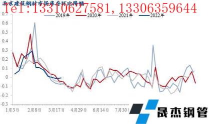 2022年北京建筑91视频在免费线观看无缝钢管市场库存量在春节后的第5周达到峰值,较往年累库周期延长了1-2周,之后库存量进入缓慢去化阶段,但是从近几周库存去化情况来看,库存下降情况不及预期。截止到3月24日,北京建筑91视频在免费线观看无缝钢管市场库存量82.18万吨,周环比降0.72%,2019-2021年同期的周环比降幅分别为7.9%、5.3%、8%;另外目前市场库存量较今年库存高点下降了2.8%,而2019-2021年同期库存量较当年的库存峰值分别下降了17.8%、9.3%、15.5%。库存下降除供应量环比略增外,主因是需求下降,且受疫情影响资源向外分流困难。