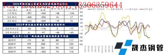 今年以来,乌鲁木齐价格震荡走高,主要原因在于,一、去年停产较早,停产面积较大,无缝91视频在免费线观看钢管厂家无压力,给贸易商的结算价较高;二、市场启动,无缝91视频在免费线观看钢管厂家逐步挺价推涨;三、库存同比持续性低位,贸易商抛货意愿低,挺价意愿高。综上三大原因,西北资源流出比例明显偏低,伴随着近期新疆天气好转,市场恢复成交,近期价格逐步走低,区域价差将逐步恢复。