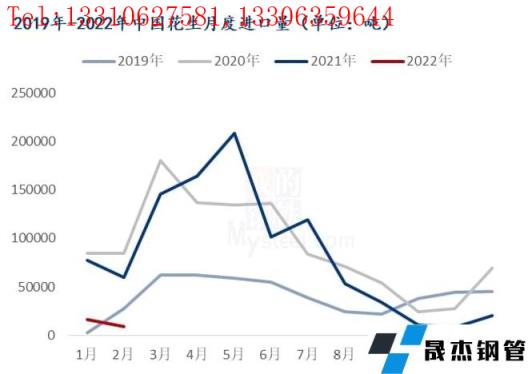 2022年1-2月份,进口花生总量为24966吨,与去年同期相比减少112458吨,降幅为81.83%。在油厂榨力明显好转的情况下,对国内花生需求量持续增加。进入4-5月份,预计进口花生将集中到港,或将抑制国产花生行情,油厂对于国内花生的需求在一定程度上将有所减少。
