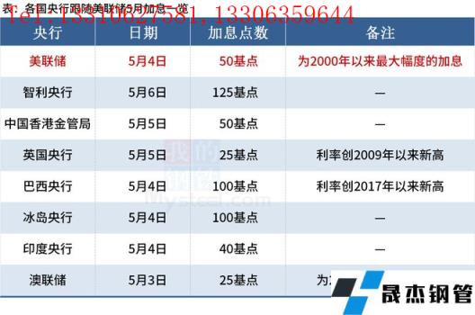 据不完全统计,截至发稿,5月已有6家央行跟随美联储脚步加息,1家央行先于美联储一天加息。具体如下: