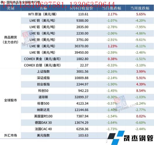 金融市场:本周主要商品期货除原油价格上涨外,其余品种价格均下跌;全球股市中,中国股市上涨明显,欧美股市均下跌;美元指数103.63,上涨1.25%。
