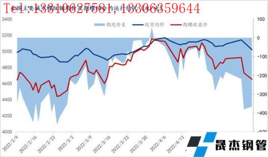 截至收盘,期螺10合约价格收于4654元/吨,较6日收盘价相比,跌80元/吨。全国主要城市螺纹钢均价收于5020元/吨,较5月6日下降94元/吨。从下跌幅度来看,上周五期螺跌幅跌幅较大,今日现货市场补跌较为明显。从期现货升贴水情况来看,近3日期螺跌幅较大,较现货贴水也在扩大,从本轮下跌来看,期货对现货带动较为明显,市场预期在期货上体现较足。