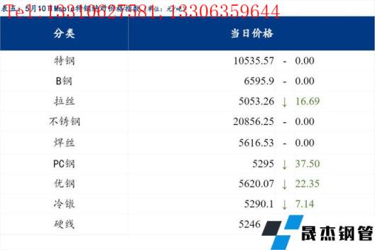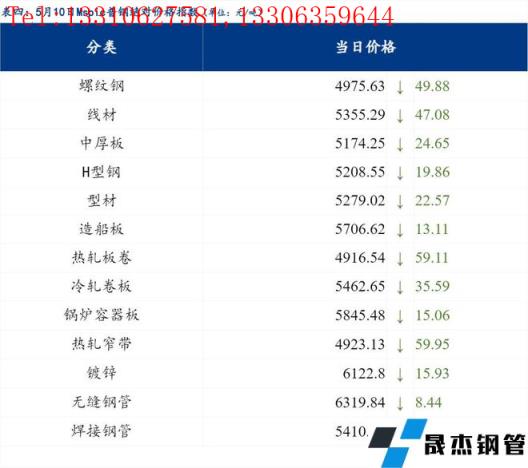 5月10日普钢绝对价格指数变化:综合指数5177.26,下跌43.86;螺纹钢指数4975.63,下跌49.88;线材指数5355.29,下跌47.08;热轧板卷指数4916.54,下跌59.11;冷轧板卷指数5462.65,下跌35.59;中厚板指数5174.25,下跌24.65。