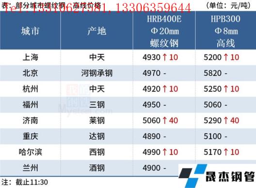 ◎杭州:12日早盘建材市场价格上涨10,螺沙4900中4890西城4870浙江华宏4800江苏镔鑫4800长达抗震4870线材中天5250亚新5170联鑫黄海盘螺5130。(单位:元/吨)