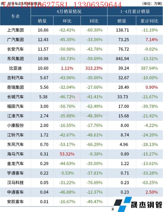 从环比来看,除比亚迪和海马汽车外,其余车企4月产销量在环比上均有所下降。其中上汽集团4月产销量环比降幅最大,分别降低62.32%和62.41%。
