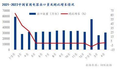 从统计局公布的最新数据看,2022年一季度中国家用电器出口数量为81097万台,相比2021年同期减少了7001万台,同比下降7.9%。其中4月中国家用电器出口量31164.8万台,同比增长1.0%。