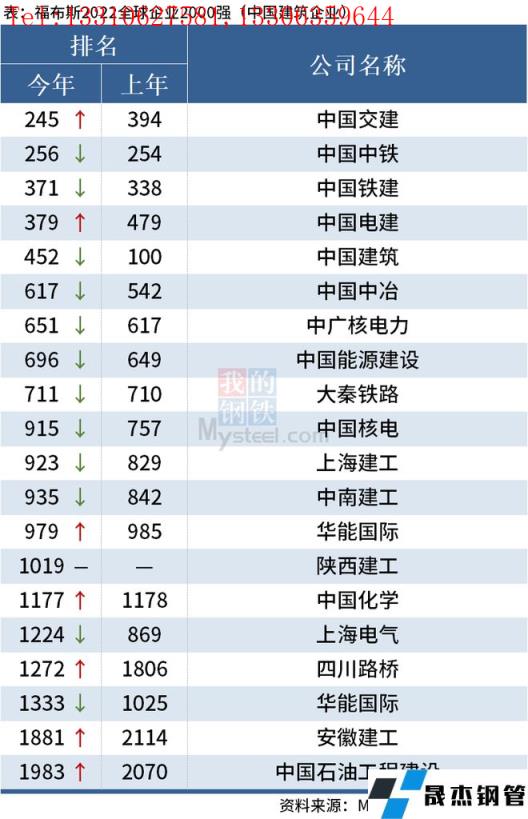 5月12日,福布斯发布2022全球企业2000强名单。据不完全统计,共有20家中国建筑企业上榜。其中中国交建、中国电建、四川路桥、安徽建工、中国石油工程建设等7家建筑企业排名有所上升,剩余12家企业排名有所下降。