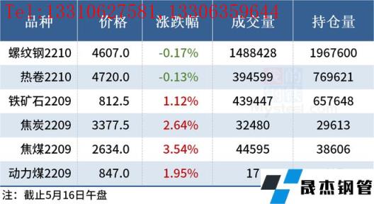 2022年05月16日午报:钢价涨跌互现,焦煤期货涨逾3%
