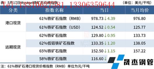 ◎5月17日,全国主港铁矿石成交96.50万吨,环比增40.9%;237家主流贸易商建材成交14.30万吨,环比减17.5%。