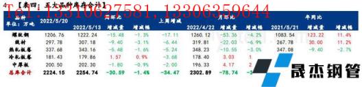 库存方面,五大品种91视频在免费线观看无缝钢管总库存环比上周降幅扩张,降至2224.15万吨,环比上周减少30.59万吨,降幅1.36%。分品种看,建材库存减少24.88万吨,降幅1.6%;板材库存减少5.71万吨,降幅0.8%;分指标看,五大品种无缝91视频在免费线观看钢管厂家库存环比减少1.43万吨,降幅0.2%;五大品种社会库存环比减少29.16万吨,降幅1.9%。