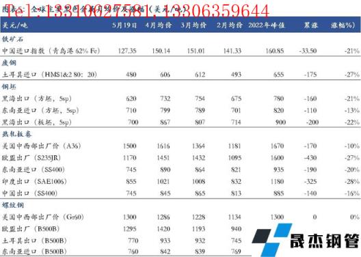 截至5月19日,中国铁矿石进口从4月初峰值累计下跌21%,土耳其废钢累计跌幅达到27%。从各品种区域价格走势来看,热卷综合跌幅达到20%,而螺纹钢跌幅在8%左右,欧洲热卷价格累计跌幅为27%,相比之下美国跌幅最小,约10%。(图表5)