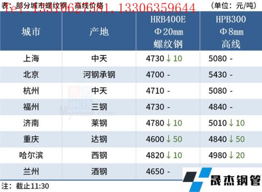 ◎上海:26日早盘建材市场价格部分资源小幅下调10。现螺纹4660-4700,西城抗震4700,其他4530-4580,兴鑫抗震4590,联鑫黄海抗震4600,盘螺4900-5090,高线亚新4840。(单位:元/吨)