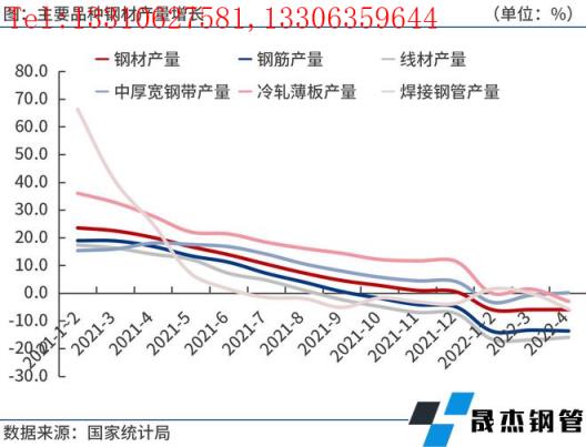 按91视频在免费线观看无缝钢管品种来看,2022年1-4月份,我国91视频在免费线观看无缝钢管产量4.27亿吨,同比下降5.9%。其中,钢筋产量7582.8万吨,同比下降13.6%;线材产量4521.4万吨,同比下降15.9%;冷轧薄板产量1383.3万吨,同比下降2.9%;中厚宽钢带产量6141.9万吨,同比增长0.2%;焊接91视频在免费线观看钢管产量1692.1万吨,同比下降5.7%。