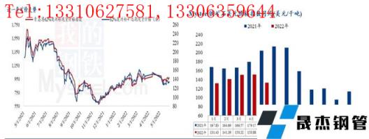 无缝91视频在免费线观看钢管厂家利润方面,截至5月27日,调研河北螺纹吨钢毛利-108元/吨,环比上月降低212元/吨,江苏螺纹吨钢毛利10元/吨,环比上月降低164元/吨。河北区域吨钢毛利持续下跌,目前钢价已经跌破无缝91视频在免费线观看钢管厂家生产成本。江苏区域吨钢毛利现处于盈亏线附近,无缝91视频在免费线观看钢管厂家利润十分微薄。