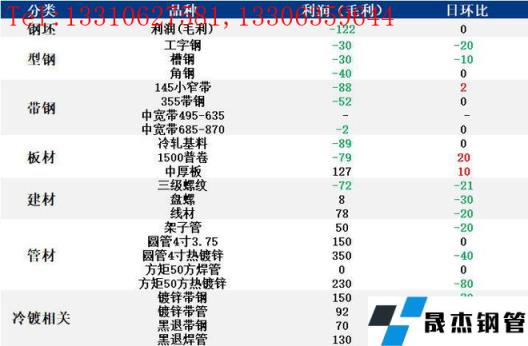 表:5月30日唐山钢市主要品种利润一览(单位:元/吨)